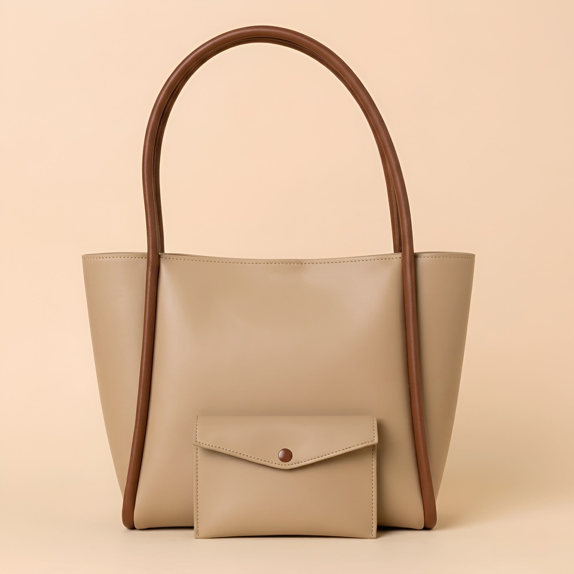 Prestige Tote Beige blends soft sophistication with modern structure. Crafted from premium faux leather, its elegant beige body is beautifully complemented by rich brown piping, creating a refined two-tone contrast that elevates any outfit. The signature striped texture on the front and back adds subtle depth and character to its structured silhouette.